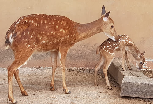 반달곰과 불곰, 공작, 꽃사슴이 뛰놀고,