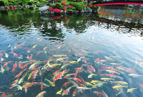 1,000여 마리 비단잉어들이 있습니다.